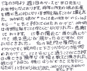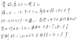 先生も説明がていねいでわかりやすいので来て良かったです。今後もよろしくお願い致します。