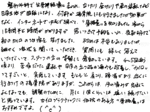 今日2回目ですが腰の方も痛みがなくなり楽になりました。
