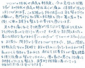 昨年も一昨年も秋から冬にかけて2ヶ月~3ヶ月いつも痛みに耐えていました。もっと早く知っていれば良かったです。