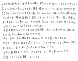 骨格屋では施術だけはでなく日頃どのような姿勢で過ごしたらよいのかなど具体的なアドバイスを頂けるので本当に助かります。いつもありがとうございます。