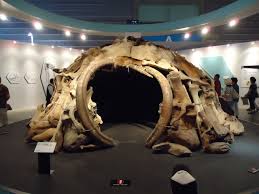 写真の右側に人が写っていますが比較するとこのマンモスでつくられた家が割と大きいものだと気づくと思います。一人ではもてあましそうです